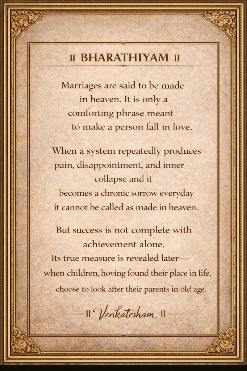 Visual Reflections belong to Bharathiyam’s timeless stream: not bound to events, opinions,