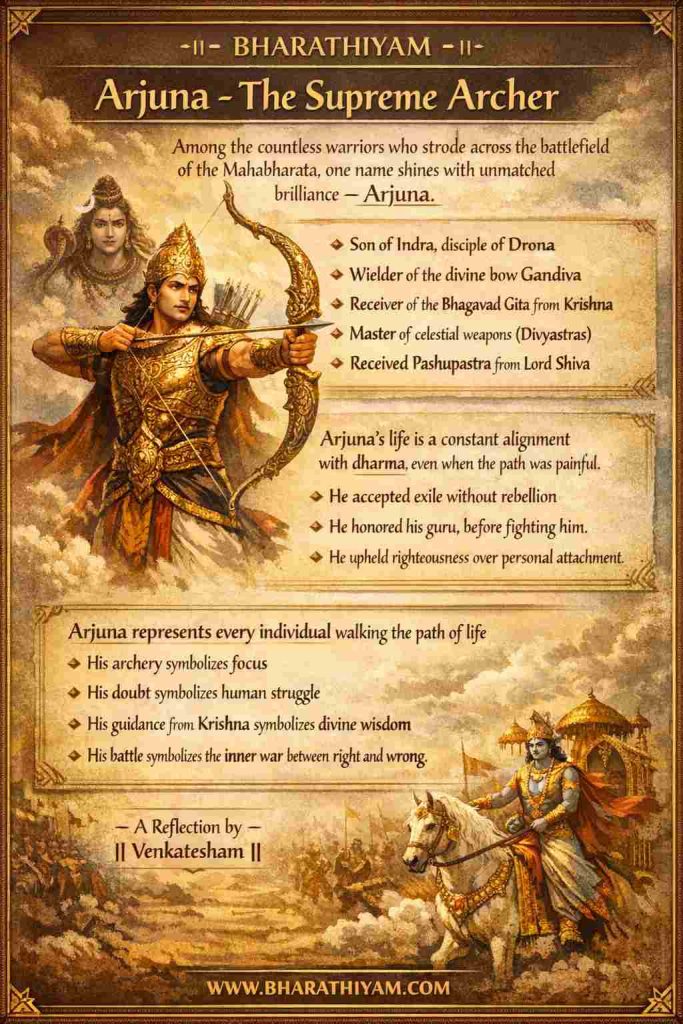 Arjuna stands as one of the greatest warriors not merely because of his unmatched skill with the bow, but because of his inner journey.